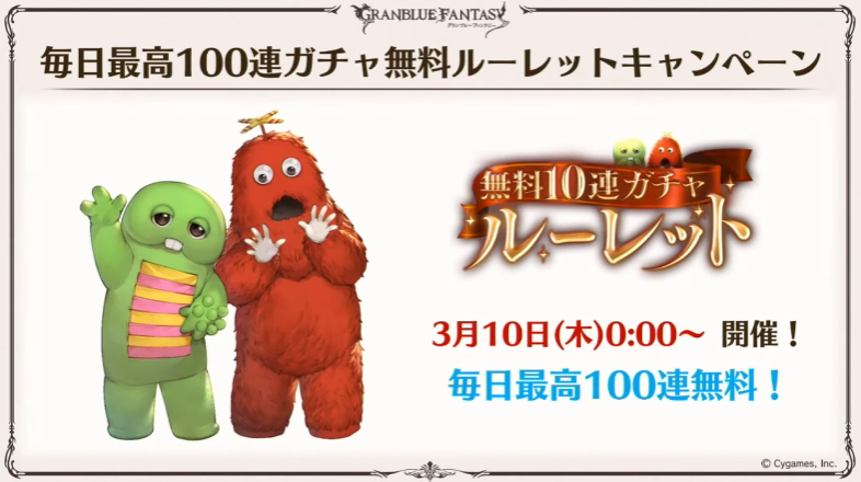毎日最高100連無料ルーレットガチャ開催決定!