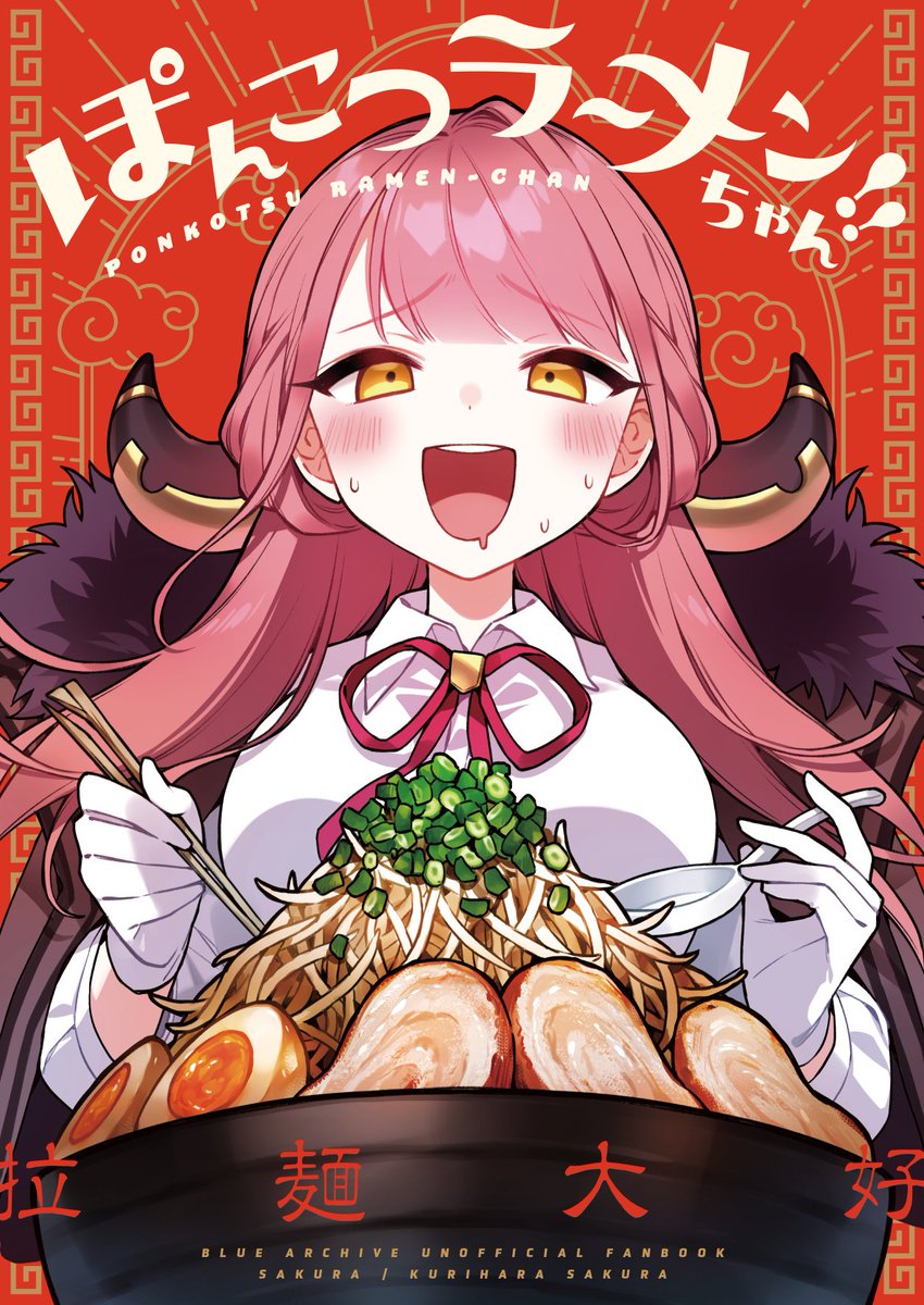 おい!!!!!!!新刊できました☺️ブルアカぽんこつラーメン社長のラーメンに始まりラーメンに終わるラーメンのフルカラー漫画です!🍜おいしそうに描けましたのでぜひ☺️🎉色塗り頑張りました☺️🎉