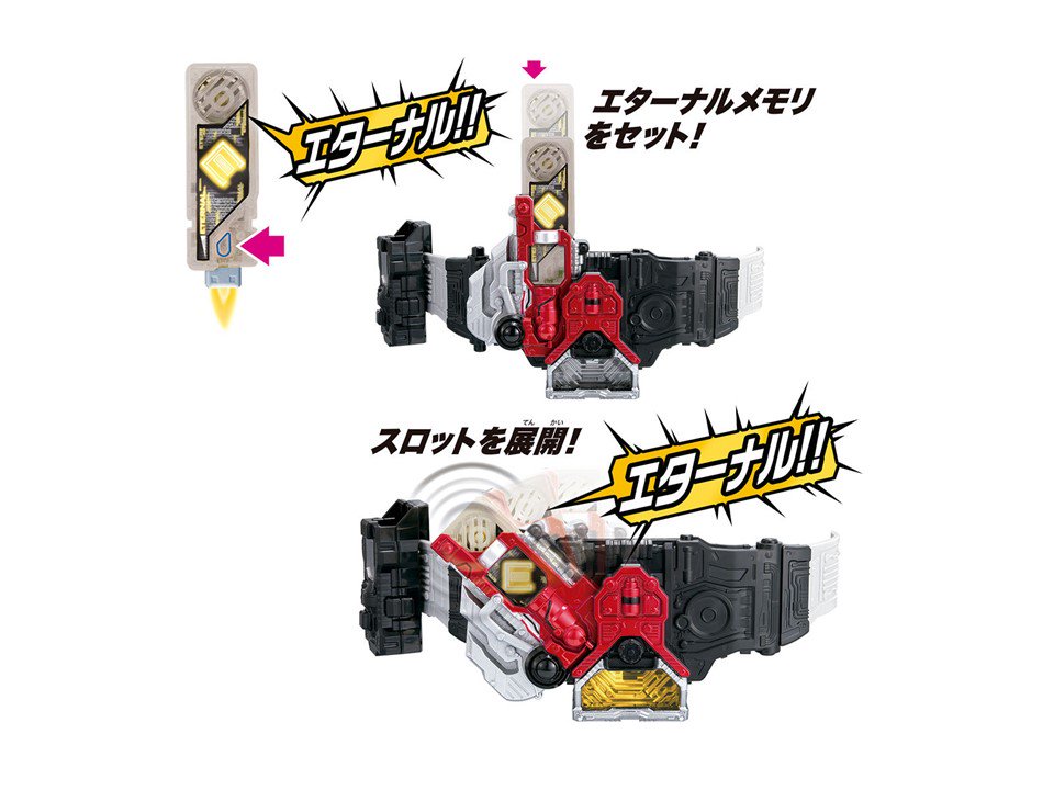 ガイアメモリ2本付属で、仮面ライダーエターナルと仮面ライダースカルに変身!