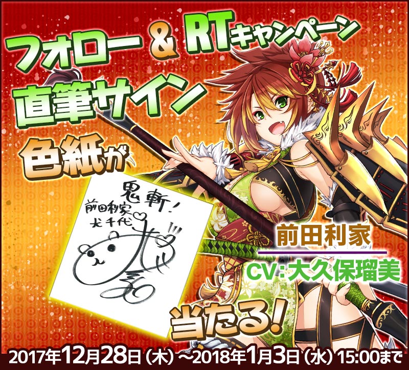 【色紙プレゼント #RTキャンペーン 】#鬼斬 の新キャラクター「本多忠勝」のボイスを担当していただいている「 #朝ノ瑠璃 ( @asanoruri )」さんの直筆 #サイン色紙 を3名様にプレゼント!