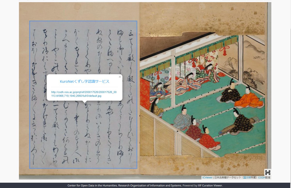 「くずし字認識ビューア」を公開しました。IIIFで公開されている任意の画像に対して、ディープラーニングを用いた「くずし字一文字認識」をお試しできます。tensorflow.jsを活用し、ブラウザ上でくずし字認識を実行しています。