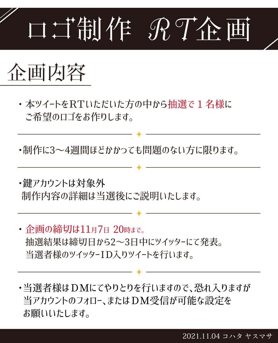 本ツイートをRTいただいた方の中から、抽選で1名様にご希望のロゴをお作りします。