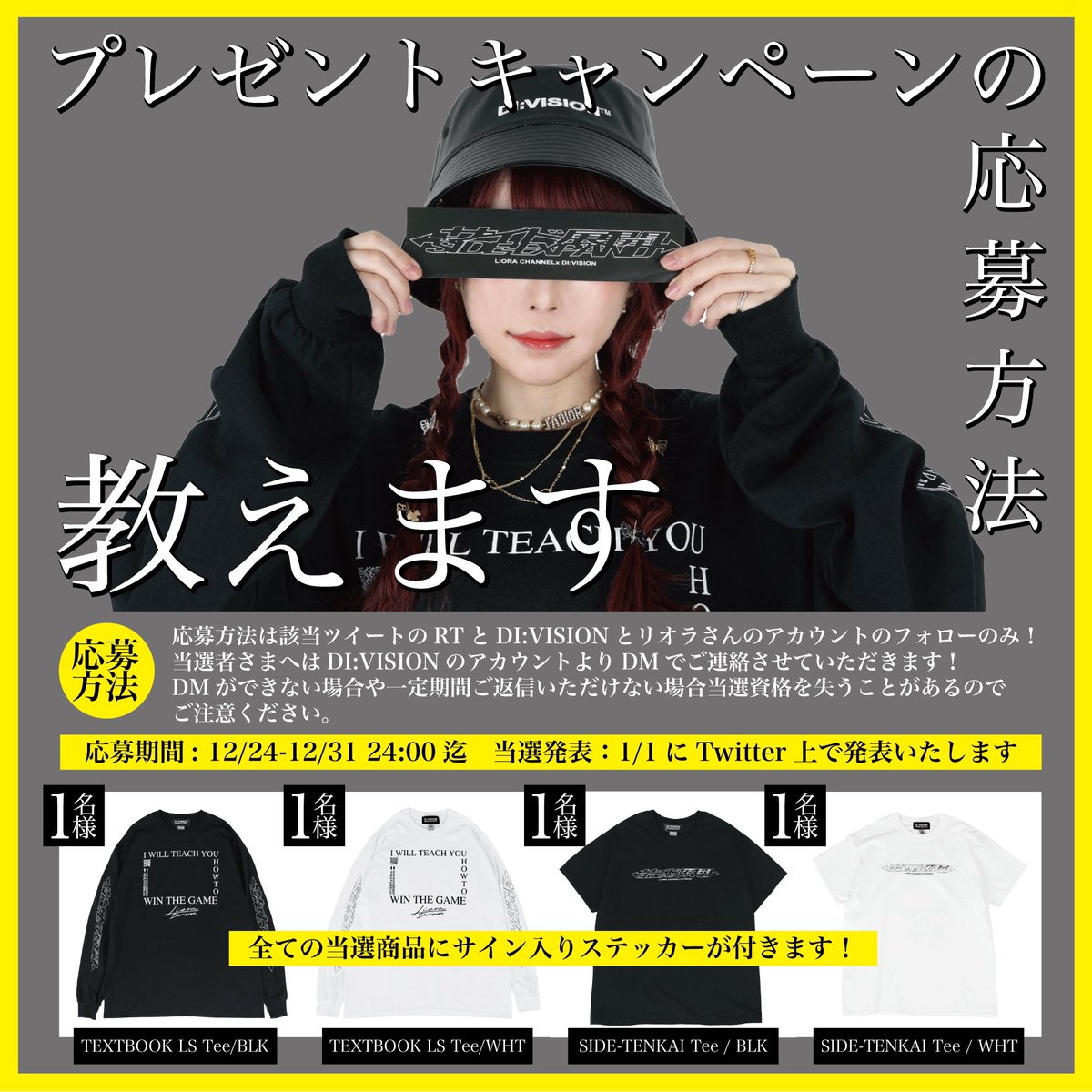 応募方法はDI:VISIONとリオラさん@liora1219 のフォローとこのツイートのRTのみ🔥