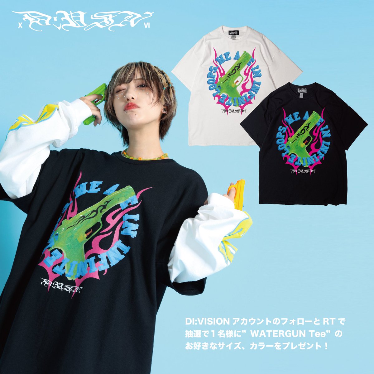 DI:VISIONアカウントのフォローと、このツイートのRTで抽選で1名様へ予約受付中の新作"WATERGUN Tee"が当たります🔥