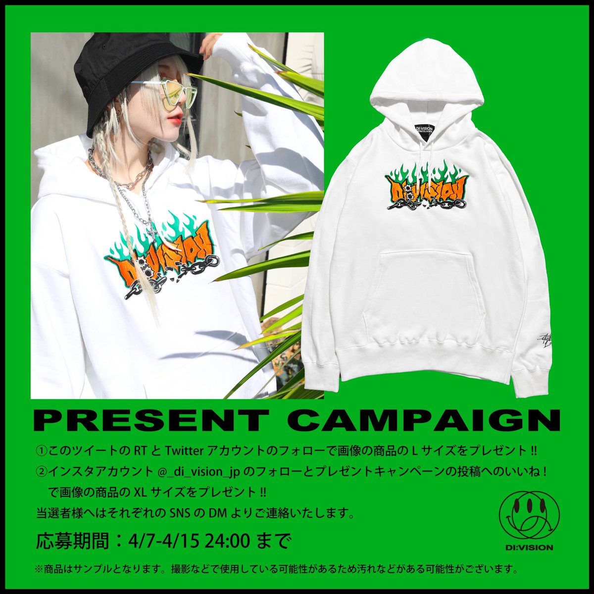 さらにDI:VISIONと @PPPPPPAPPPPP アカウントのフォロー&RTで非売品が当たるキャンペーンを同時開催‼️