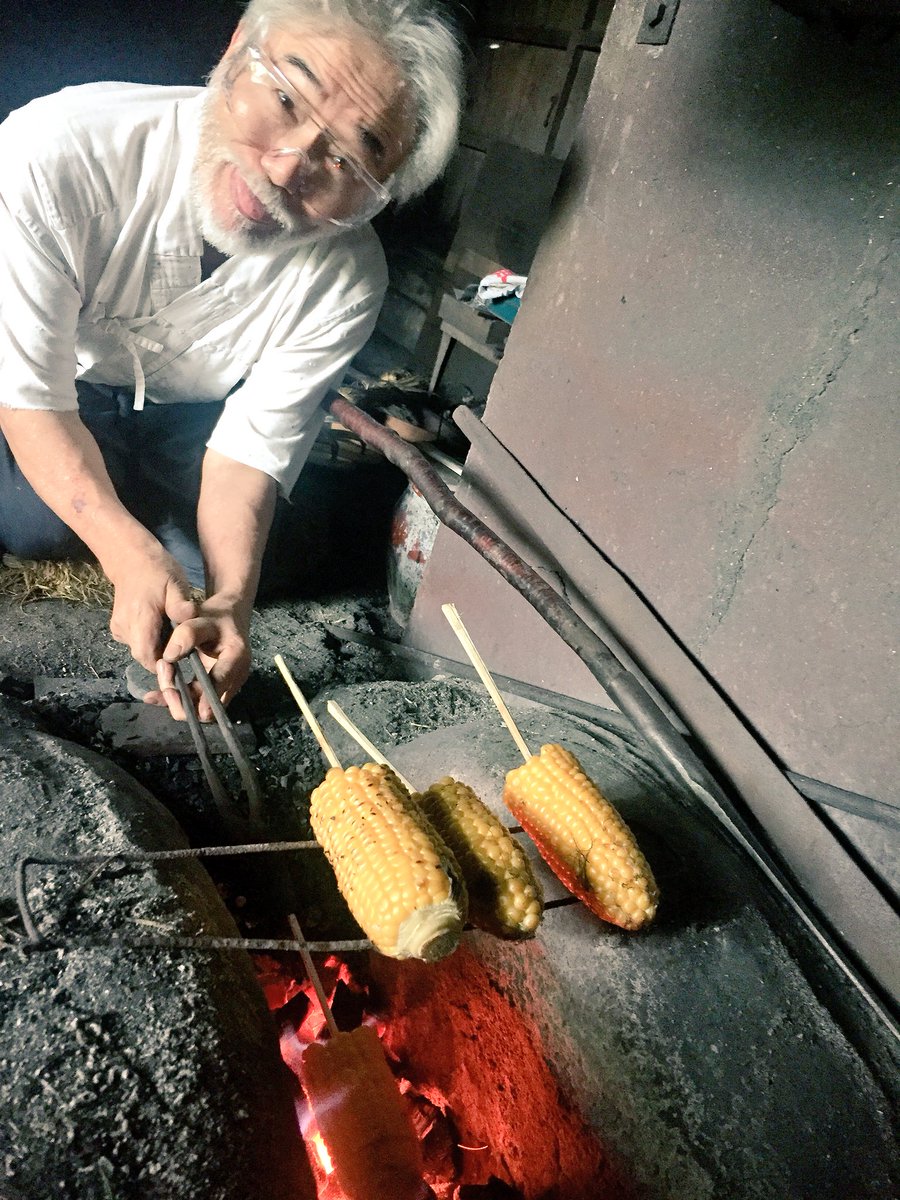 ほどでお餅を焼く藤安刀匠 pscp.tv/w/bvwAOjFsWkVw…