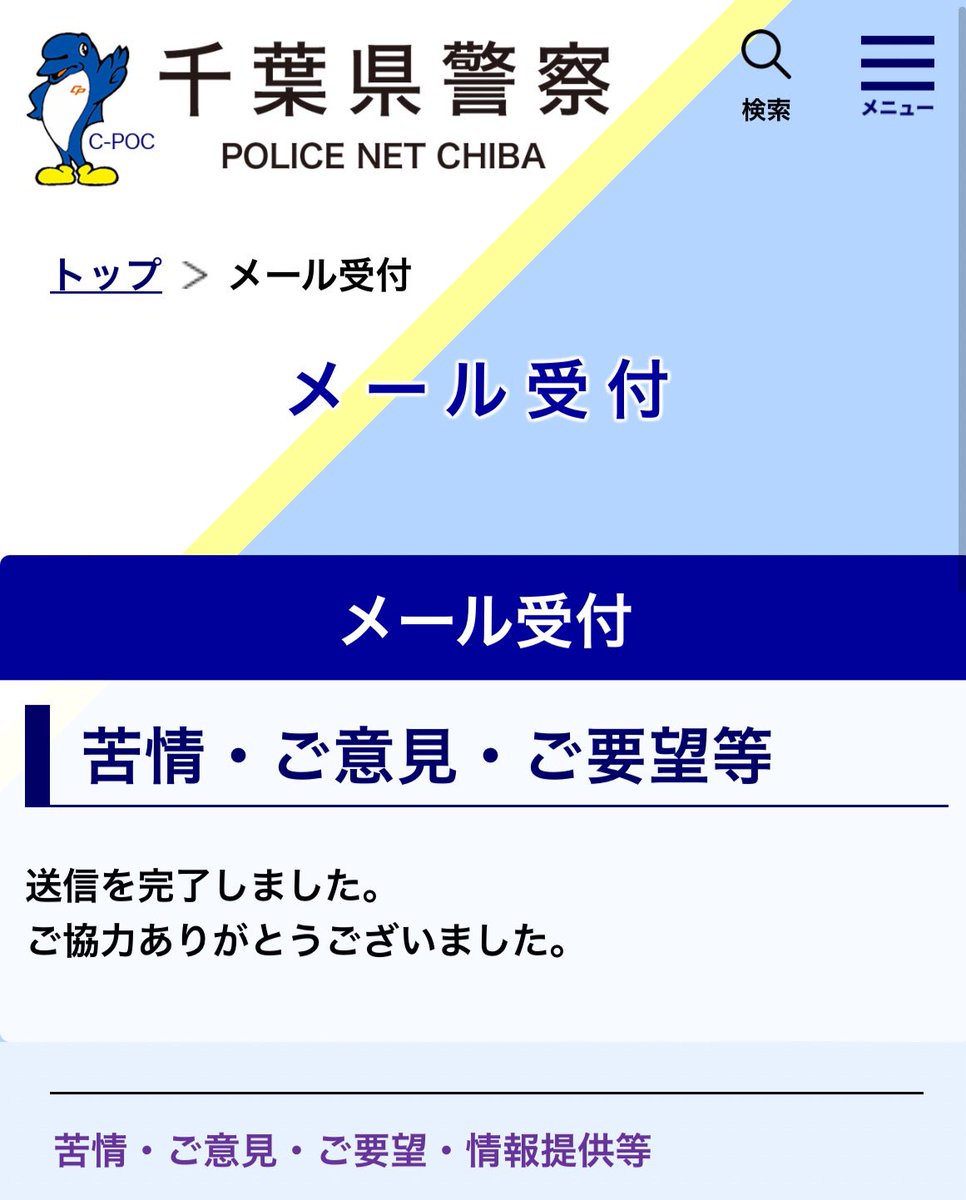 こちらの件、気づくの遅く昨晩知って遅れ馳せながら千葉県警に通報メール送りました。メールだと動画のURLを送れます。