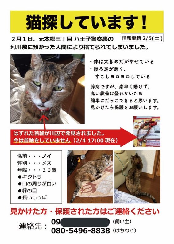 迷子猫情報のツイートの際は十分お気をつけください🙇