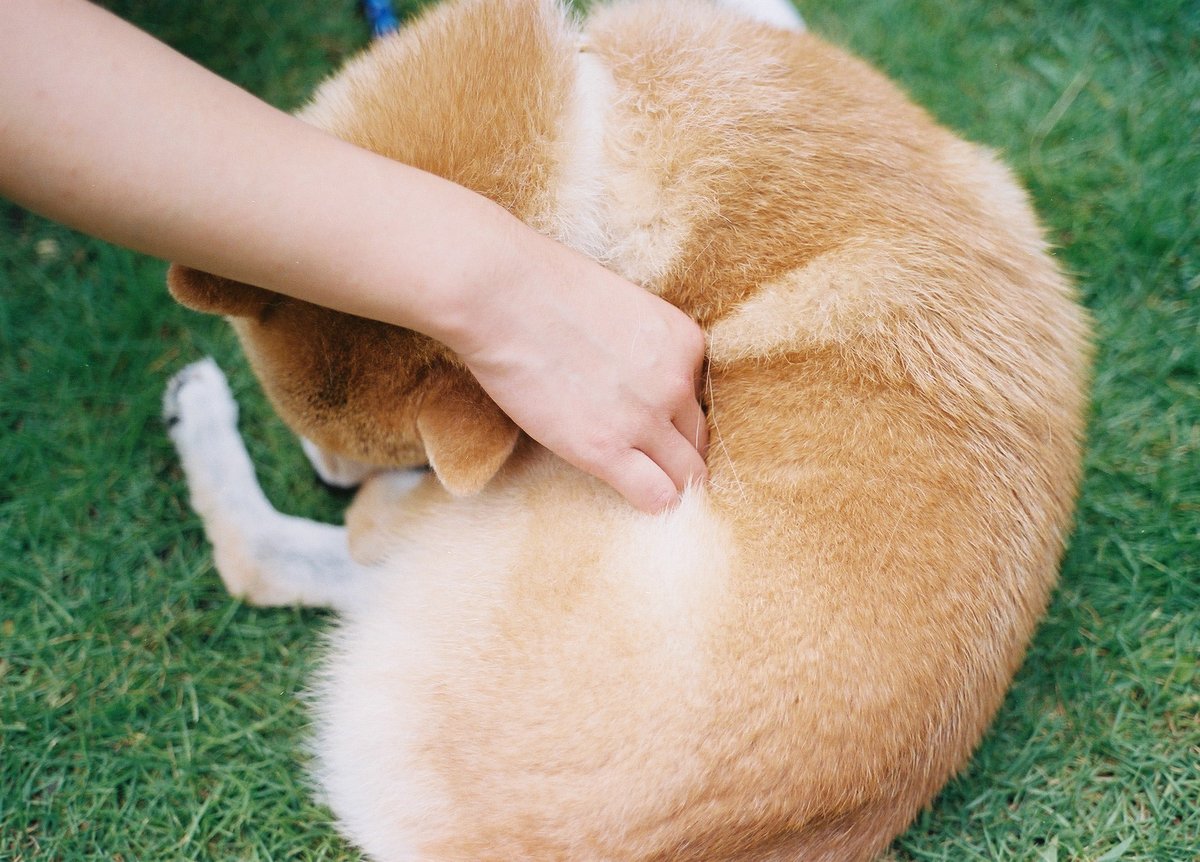 犬のそばにいくと起き上がらないが尻尾ブォンッて上げてくれる