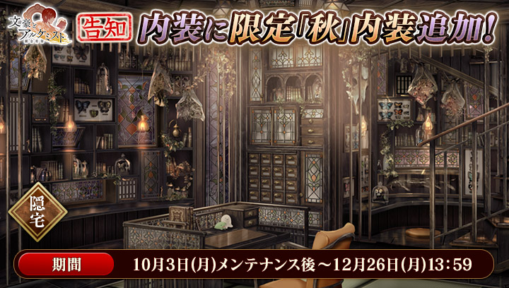 10月3日(月)メンテナンス後より、新たな秋内装と過去に登場した一部秋内装が復刻いたします。#文アル