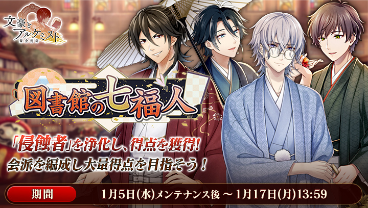 1月5日(水)メンテンス後より、限定召装「図書館の七福人」が登場!