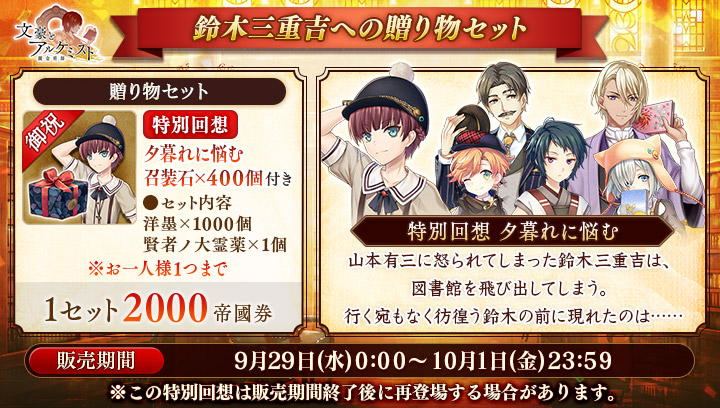 期間限定誕生日記念召装を開始いたしました。#文アル