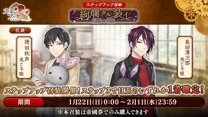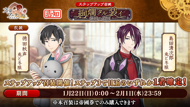 1月22日(日)0:00より、ステップアップ召装『絢爛タル装イ 徳田&島田』が登場!