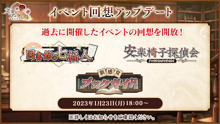 このアップデートでは、過去に開催した一部イベントの回想を特務司書の皆様が閲覧できるようになります。