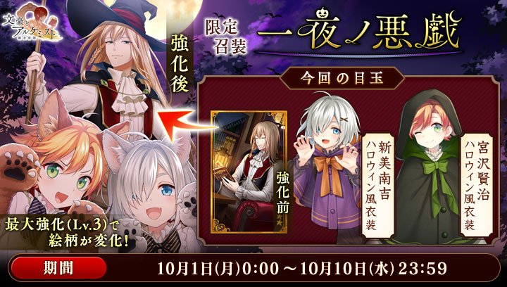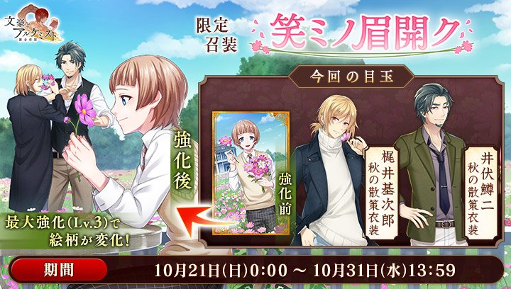10月31日(水)より実装される新文豪2名のどちらかのボイスが必ず再生されます。#文アル