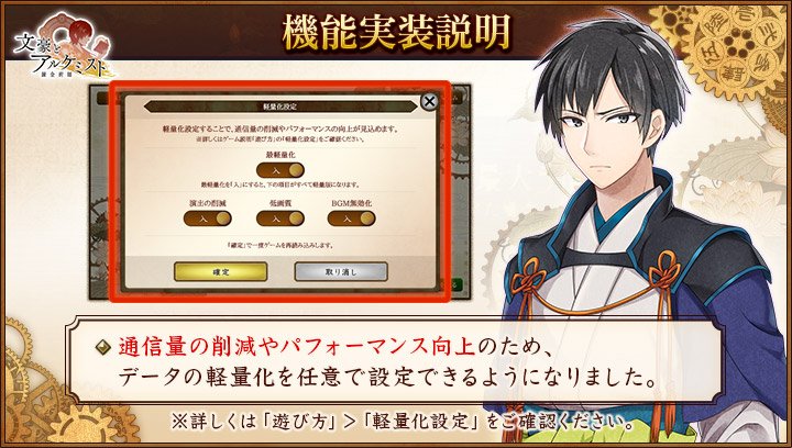 設定はスタート画面左上の『軽量化設定』より行うことができます。#文アル