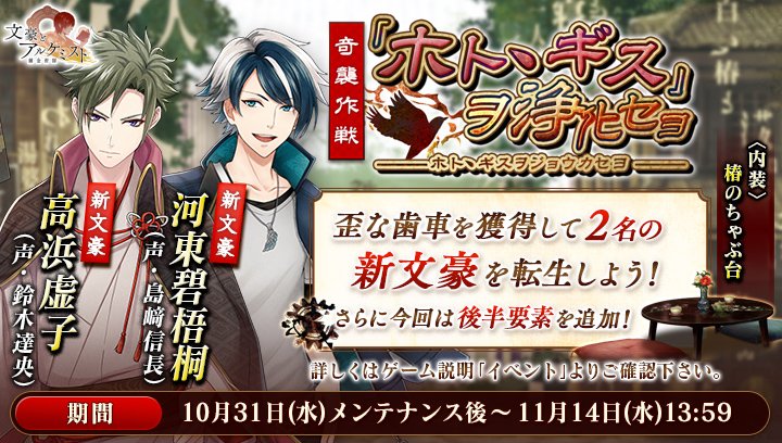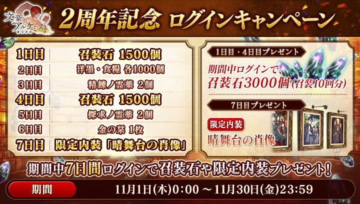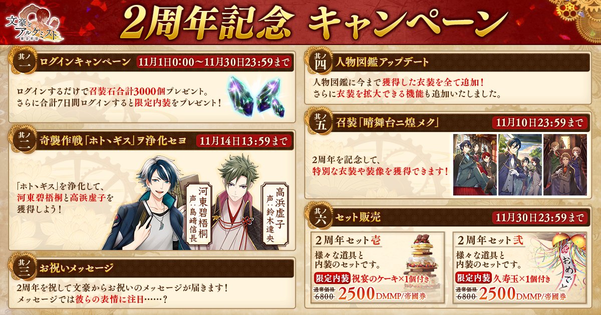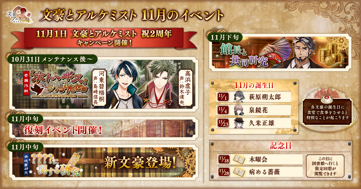 文豪とアルケミストは11月1日(木)をもちまして2周年を迎えます!