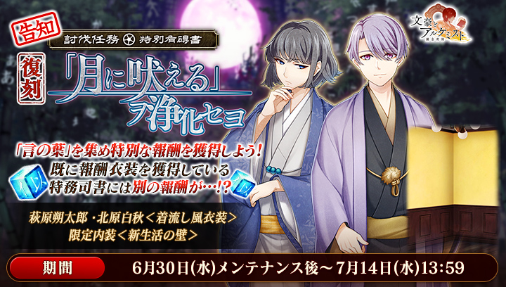 復刻イベント『討伐任務 特別有碍書「月に吠える」ヲ浄化セヨ』を開催いたしました。