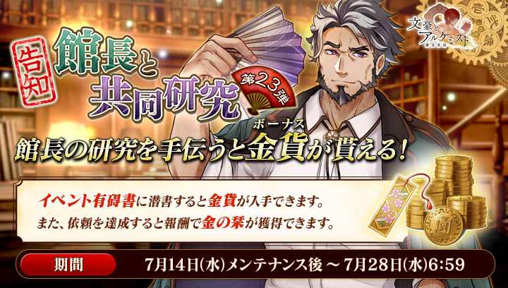 期間中、イベント有碍書に潜書すると内装などに使える金貨が入手できます。#文アル