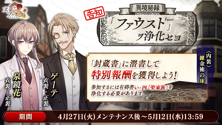 期間中、ゲーテと泉鏡花の衣装が獲得できます。#文アル