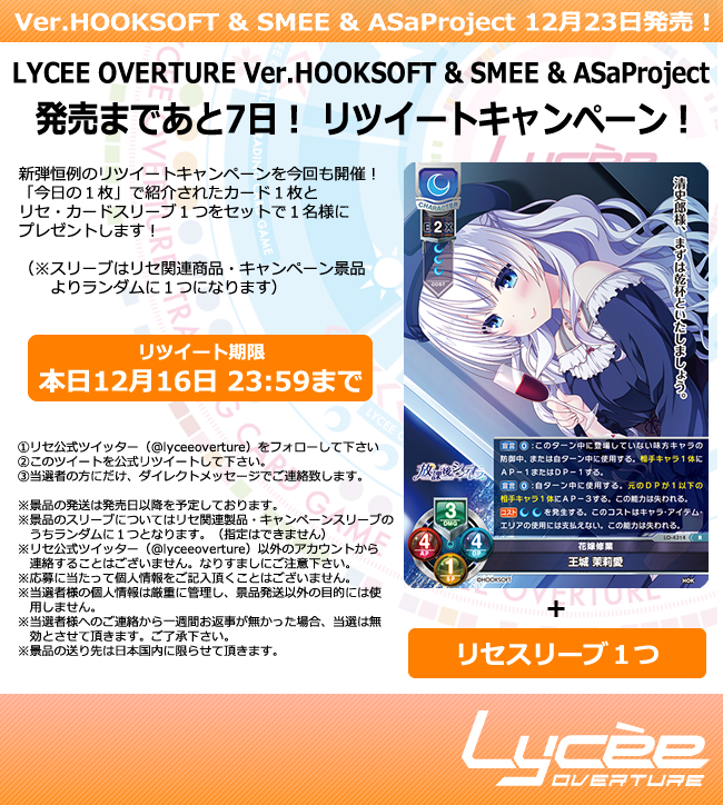 詳細は添付の画像をご覧下さい #lyceetcg #HOOKSOFT #SMEE #ASaProject lycee-tcg.com/product/vol31_…