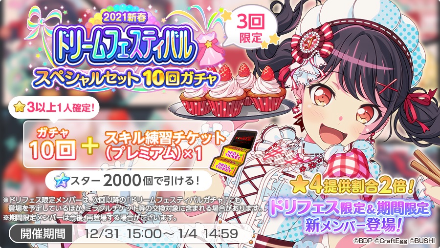 「2021新春ドリームフェスティバルガチャ」は1月4日14:59まで開催中です❣