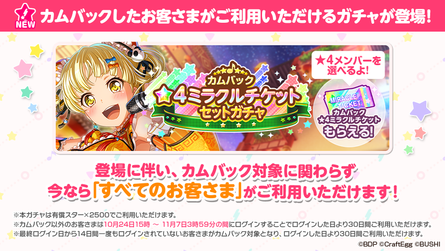 本ツイートをRTで #ガルパ超大型アップデート 当日にお知らせが届きます💌