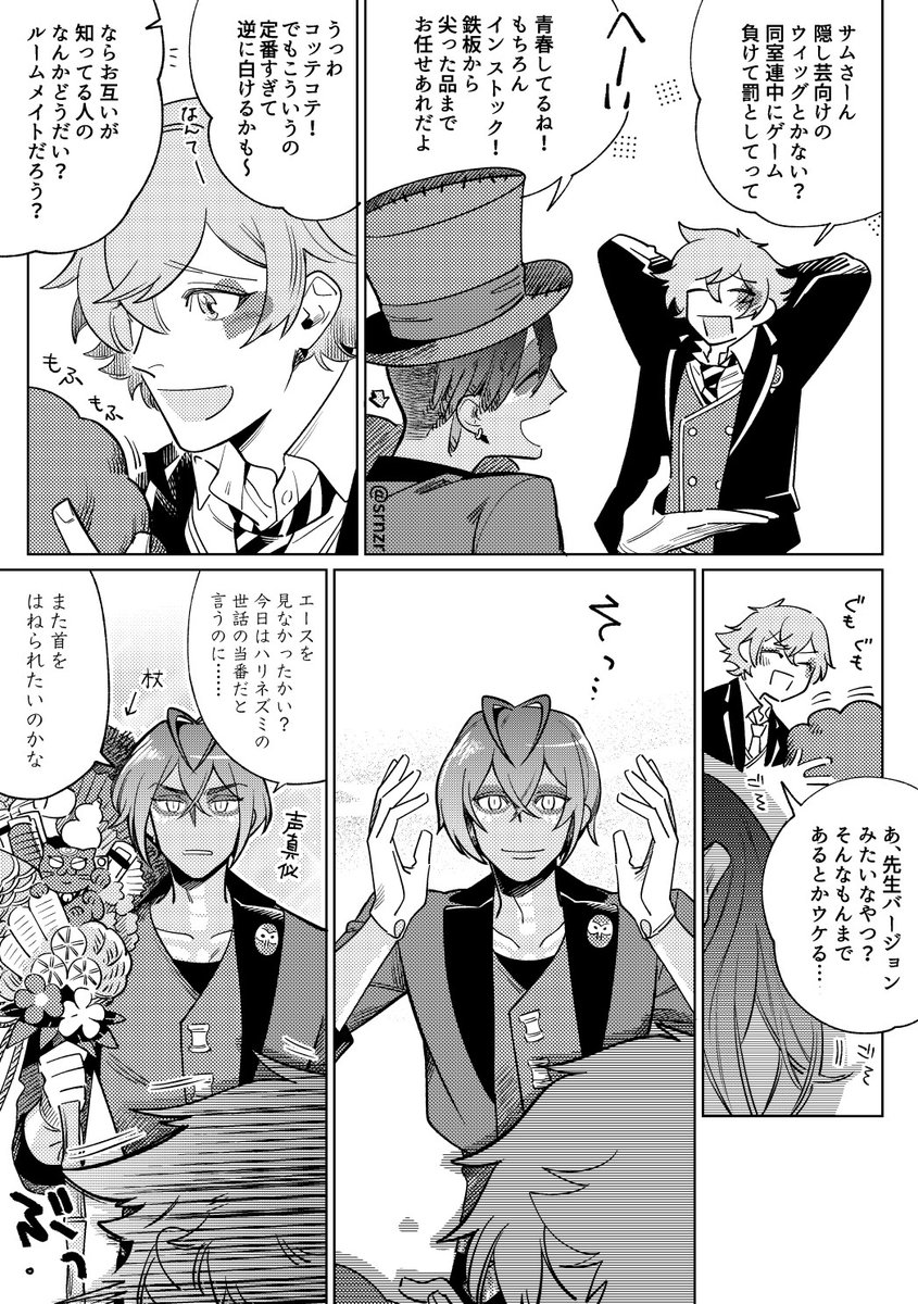 リクエスト>サムさんの髪型チェンジ(アフロのウィッグ等)が見たいです。 それを見て笑い転げるエースくんも見たいです。笑
