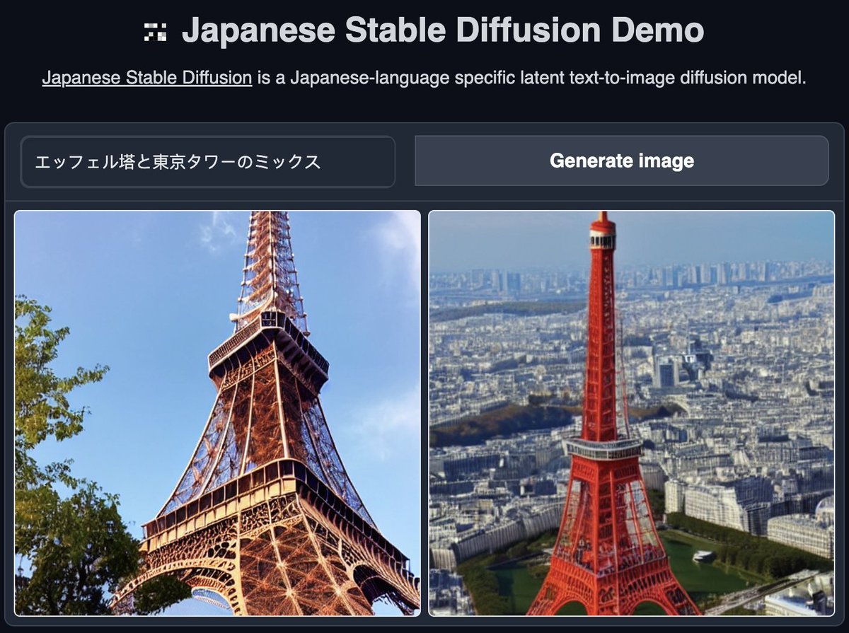 日本からの嬉しいお知らせです!rinnaが日本語で学習したJapanese Stable DiffusionがHugging Face Spacesでデモ化されました! huggingface.co/spaces/rinna/j…