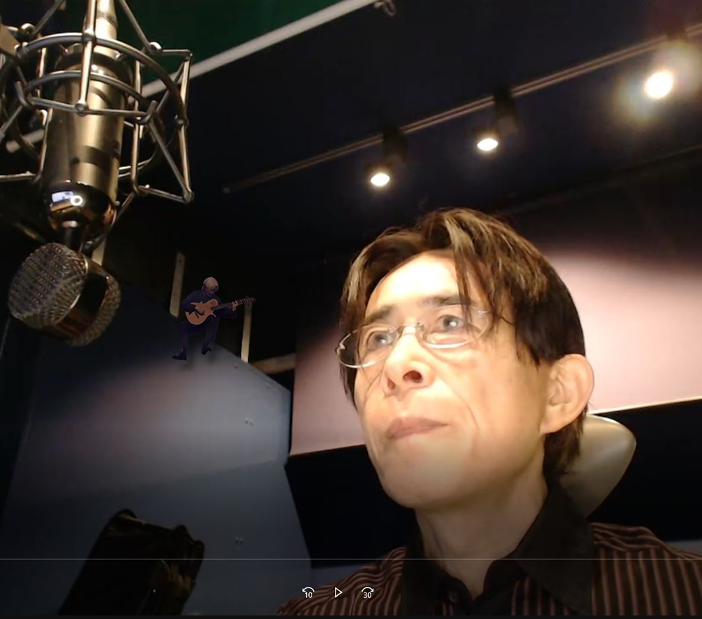 時に眼鏡をする。曲が終わるとちょっと微笑む。