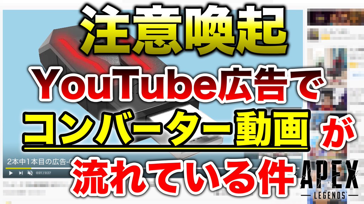 【注意喚起】現在YouTube広告にAPEXコンバーターが出ている件【エーペックスレジェンズ】youtu.be/DljyybZCK84