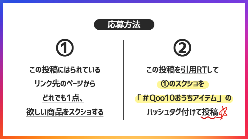 ③この投稿を引用RTして #Qoo10おうちアイテム を付けて投稿