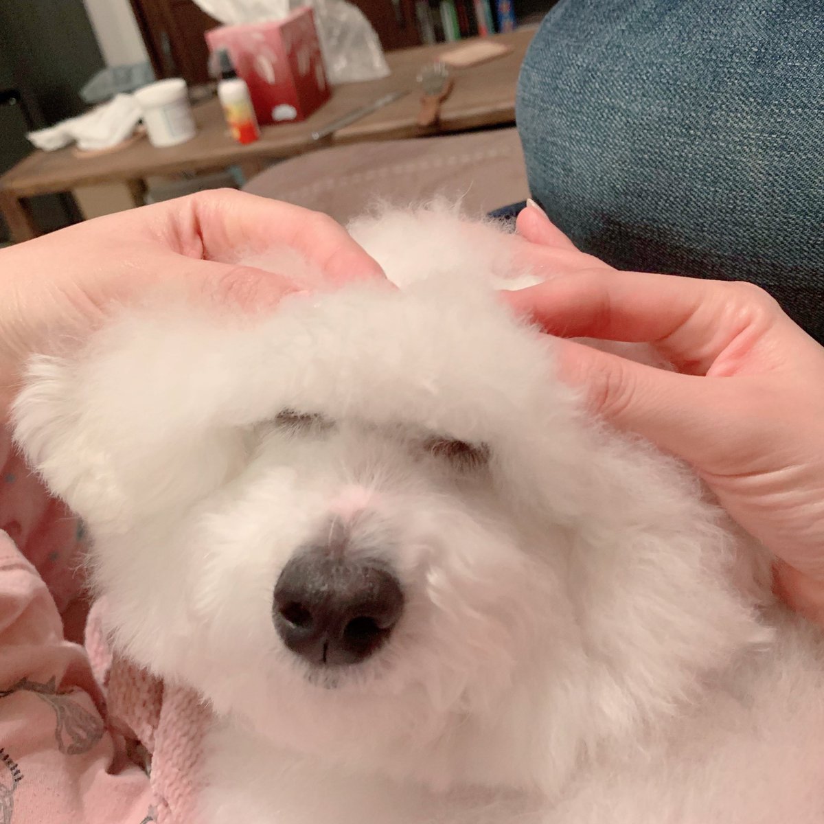 🐶「耳の後ろカリカリ最高〜〜( ´−ω−` )」