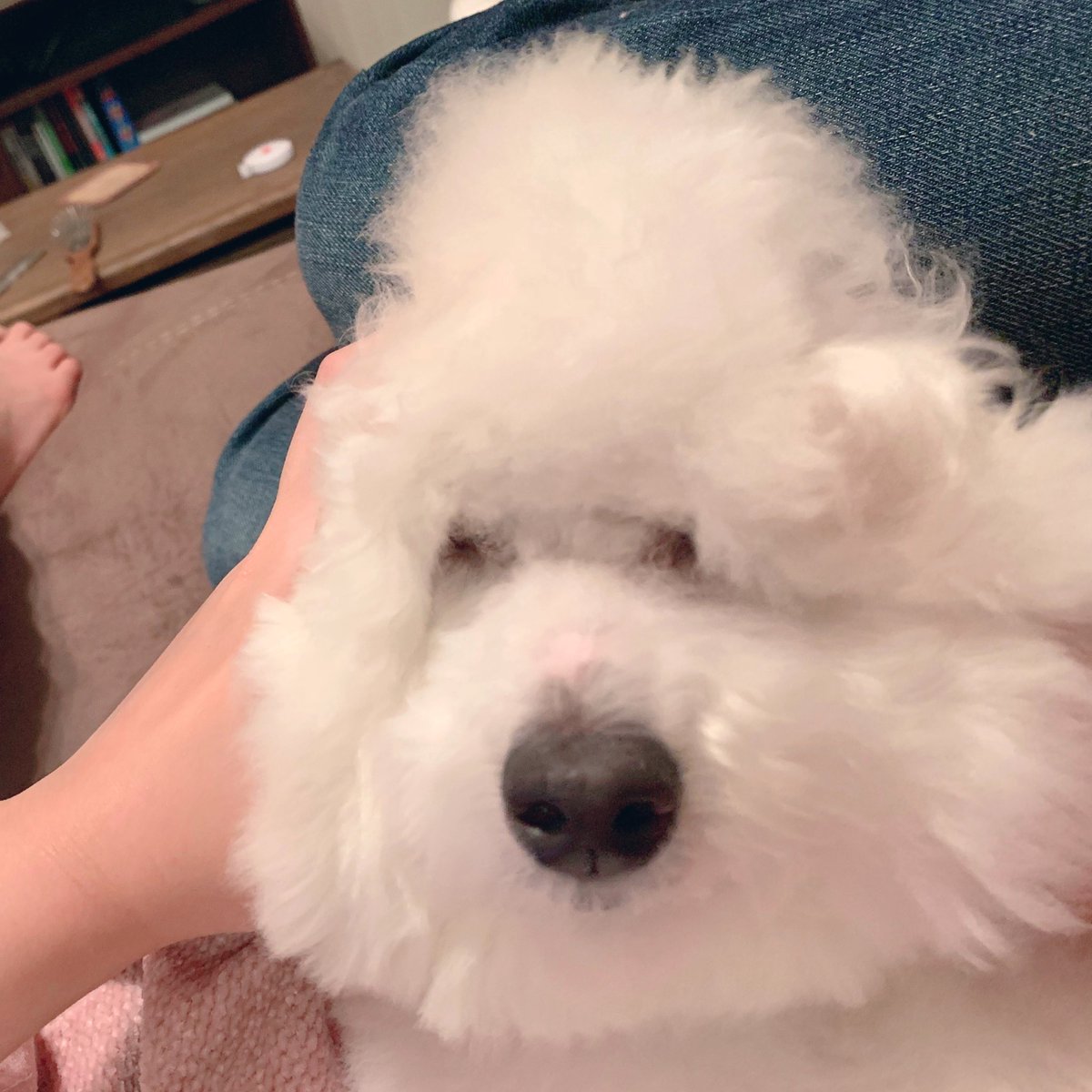 朝からモールでお散歩したおかげでもう若干眠そうなプンちゃん🐶😪