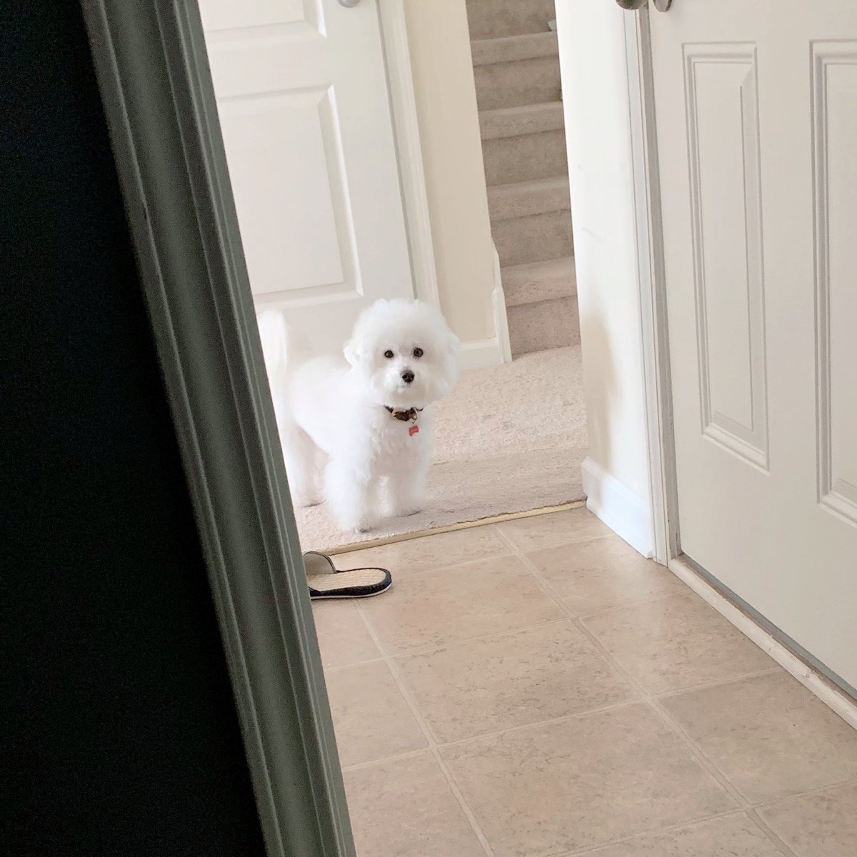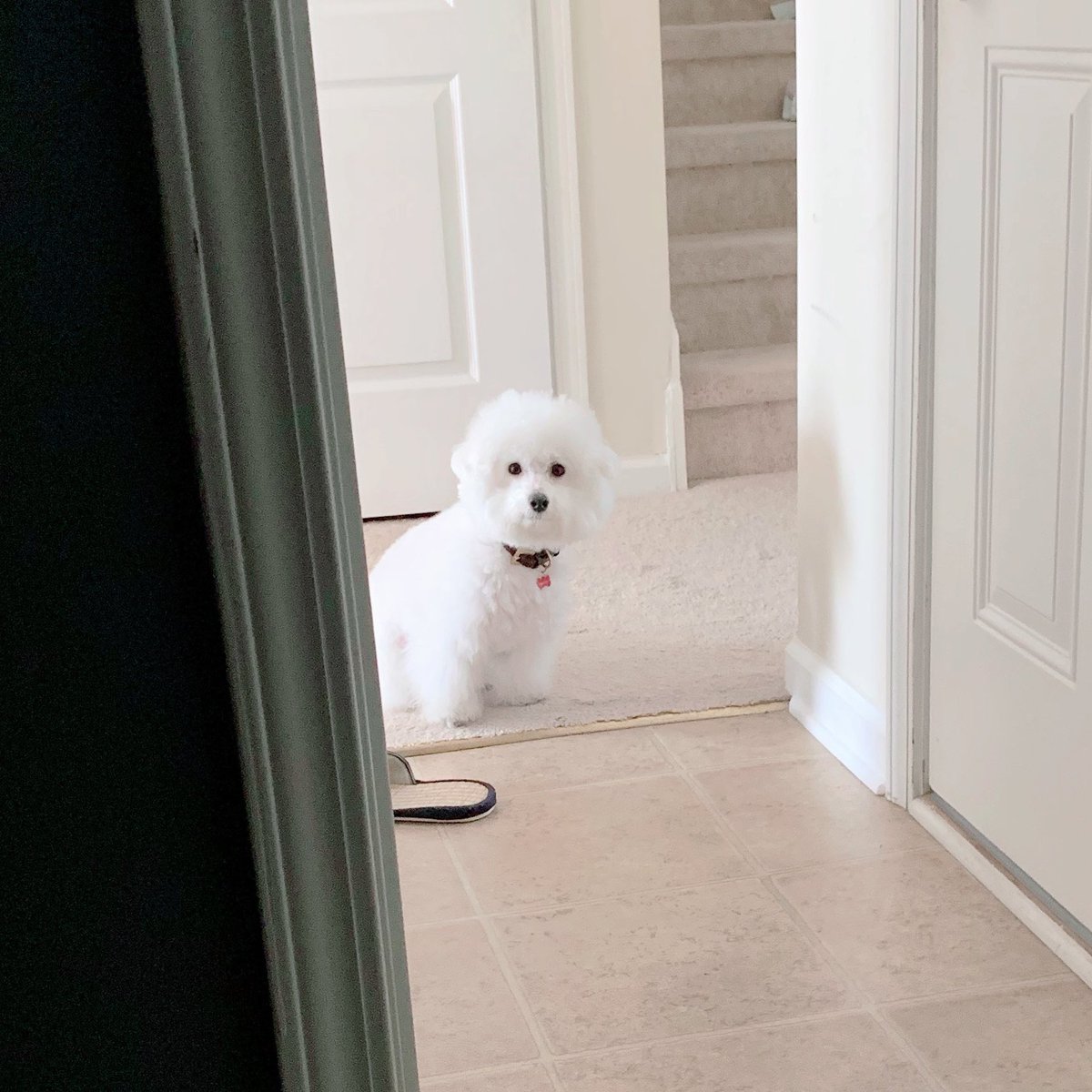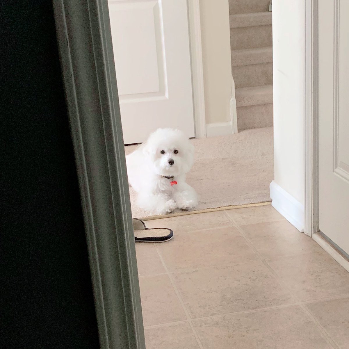親バカなのでおもちゃがプンちゃんの進入禁止区域(キッチン等タイルの場所)に入ってしまった時にちゃんと待つの賢いかわいい天才だ…!!!!🎊🥳👏👏と思う