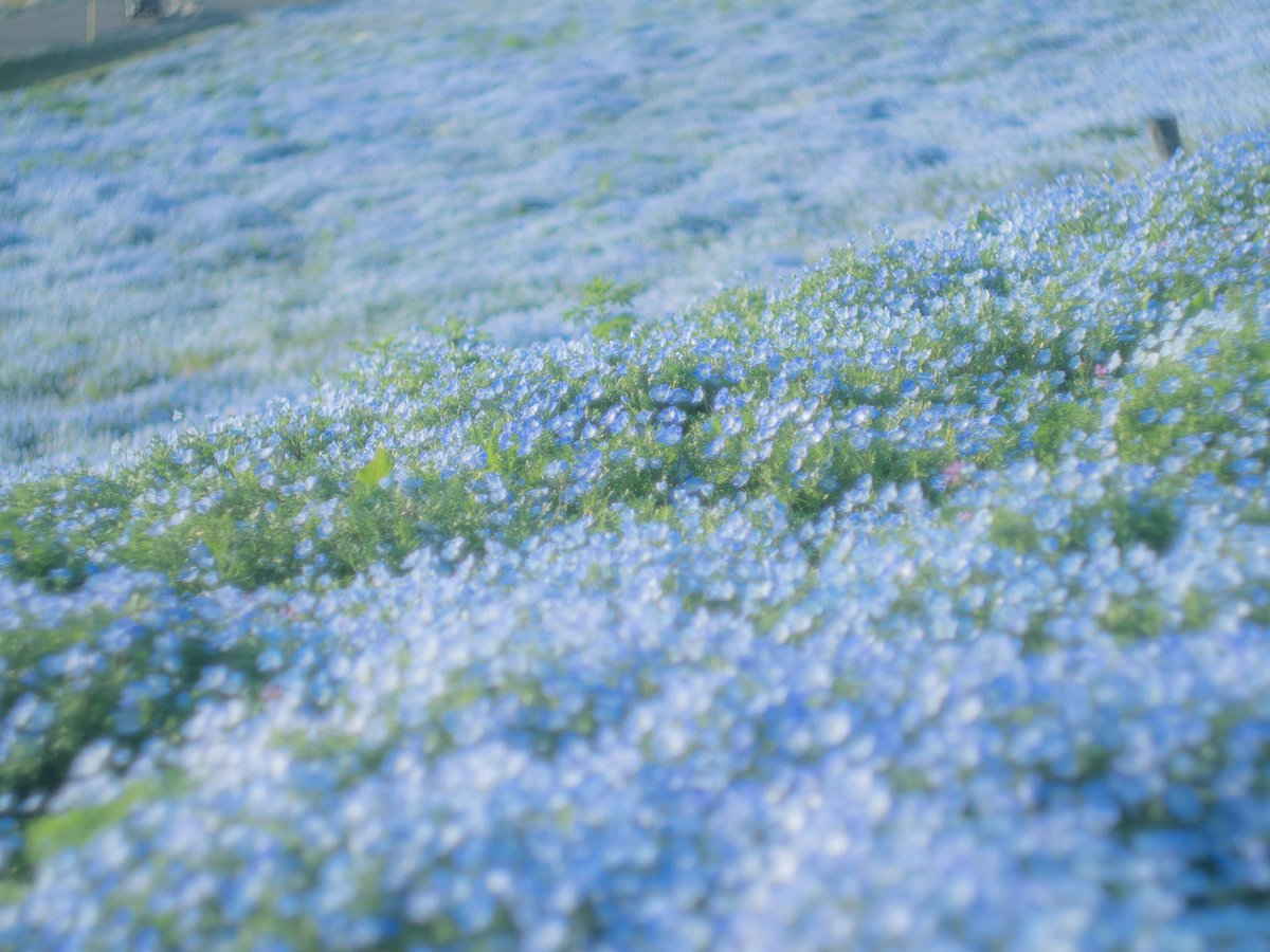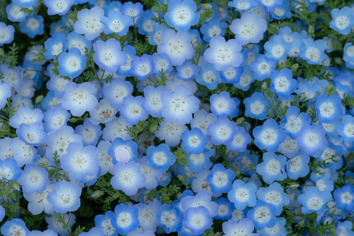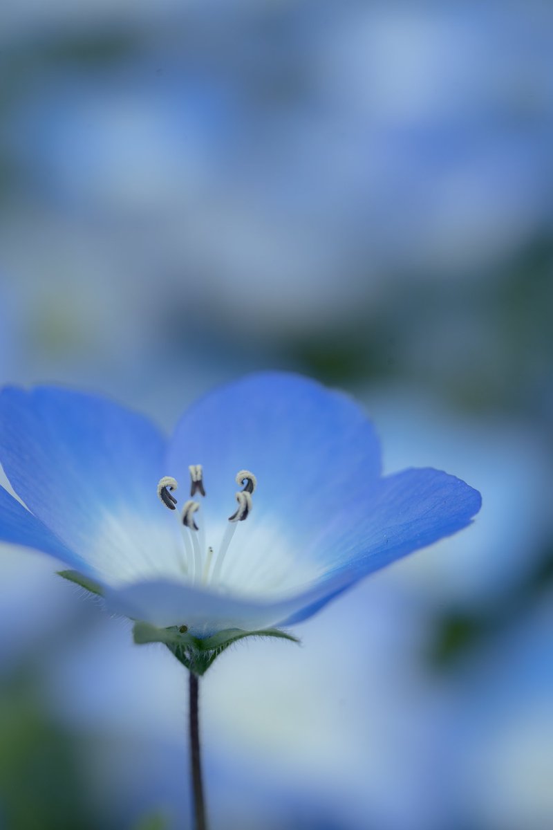 一面に咲く小さなネモフィラに寄ってみたら違った良さを見つけた。