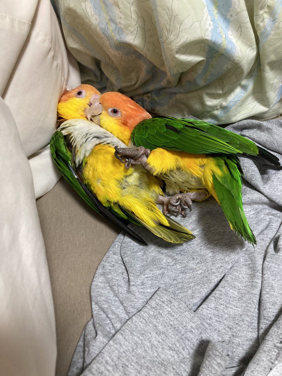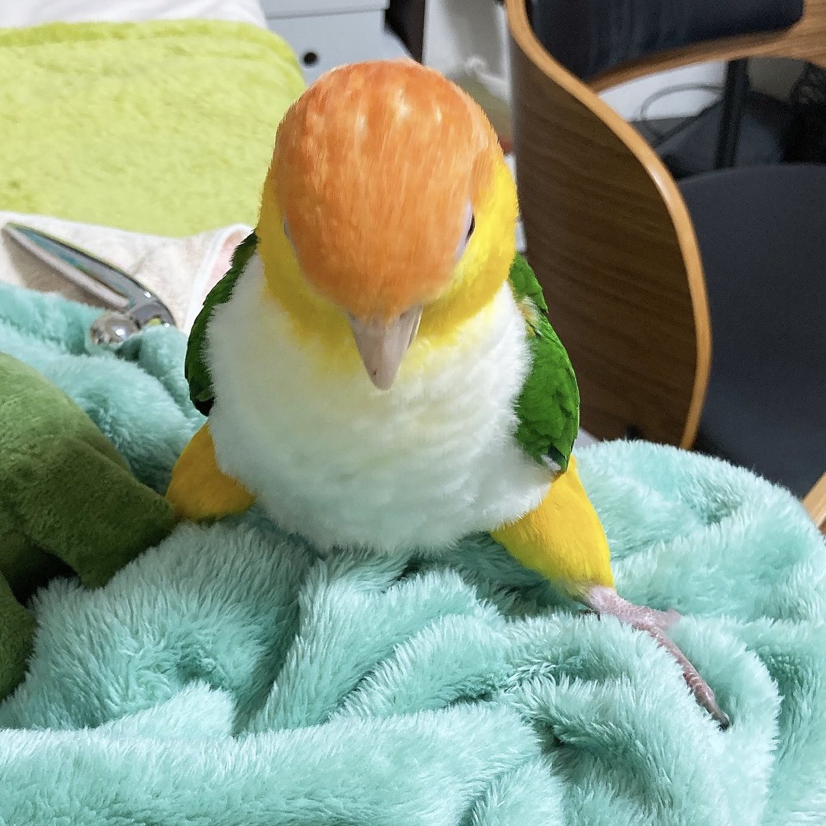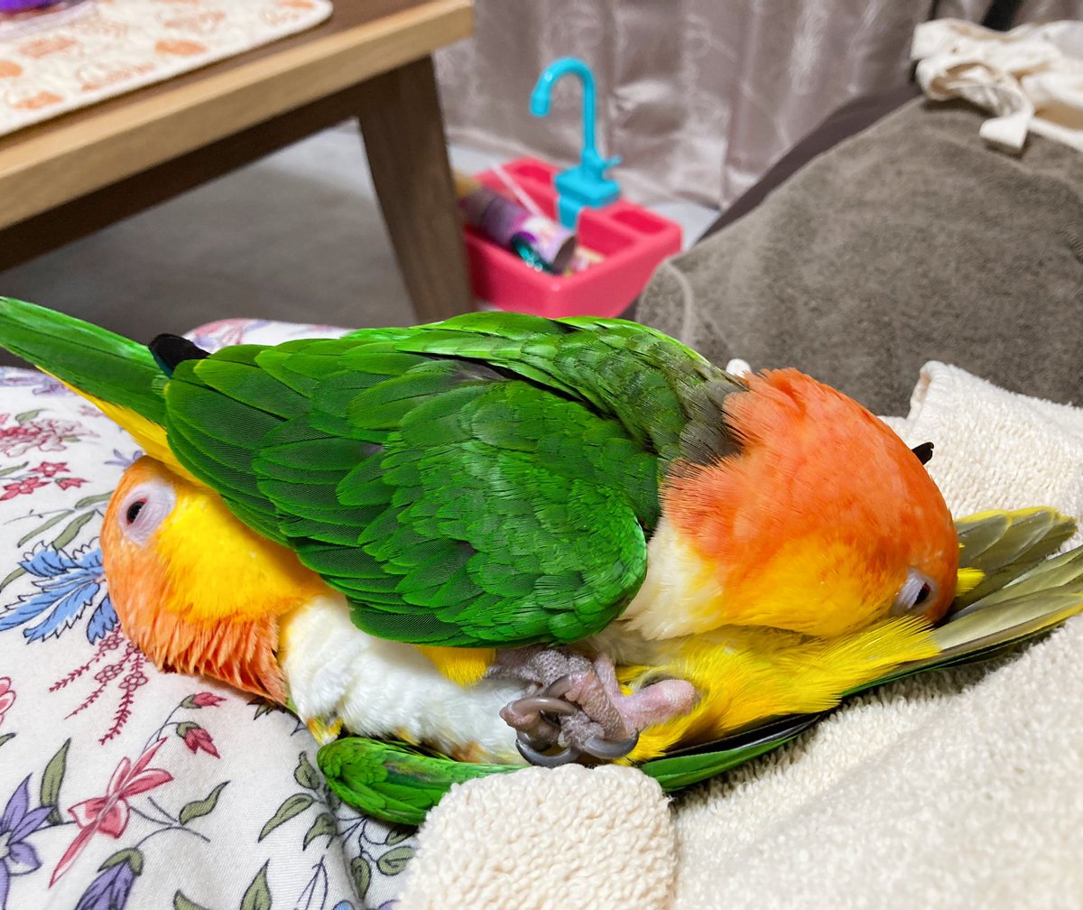 タオル大好きインコ