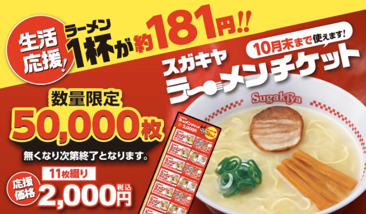 『スガキヤ』がラーメンチケットを明日から販売!
