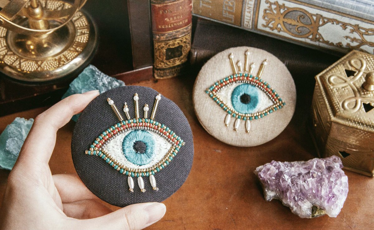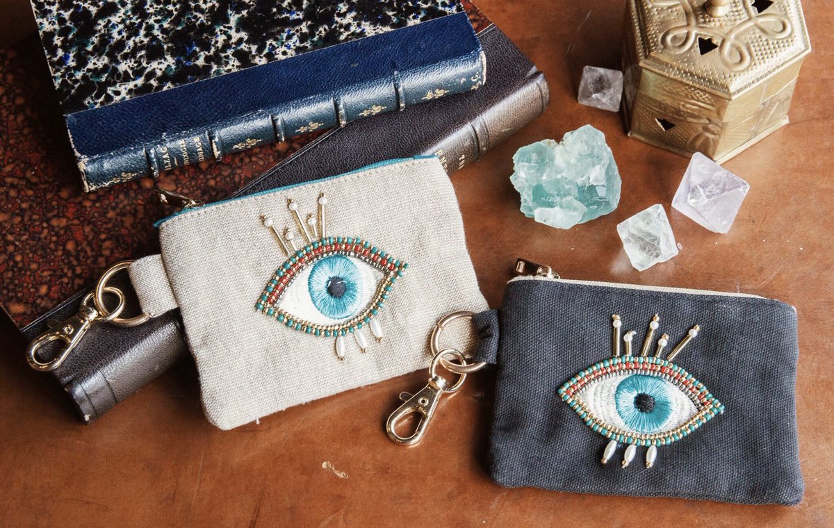 目の形のビーズ刺繍ポーチ、ポケットミラー、キーケースが新入荷しました。色はそれぞれブラックとベージュの2色です。wondertrip.shop-pro.jp/?mode=srh&keyw…