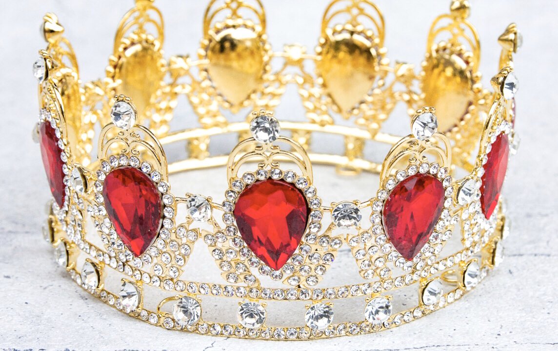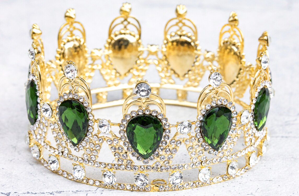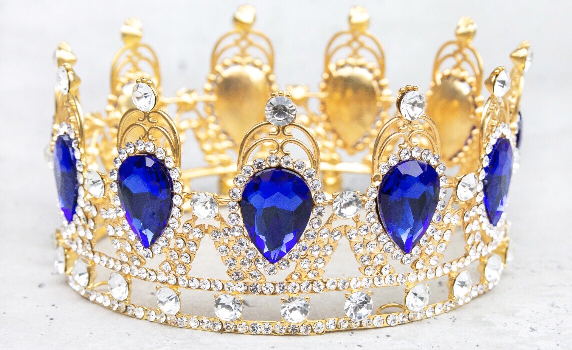 模造石とラインストーンで飾られた王冠は、青・緑・紫・赤の4色ご用意しています。金色の部分は金属でできているため、ゴージャスなつくりです。wondertrip.shop-pro.jp/?mode=srh&keyw…