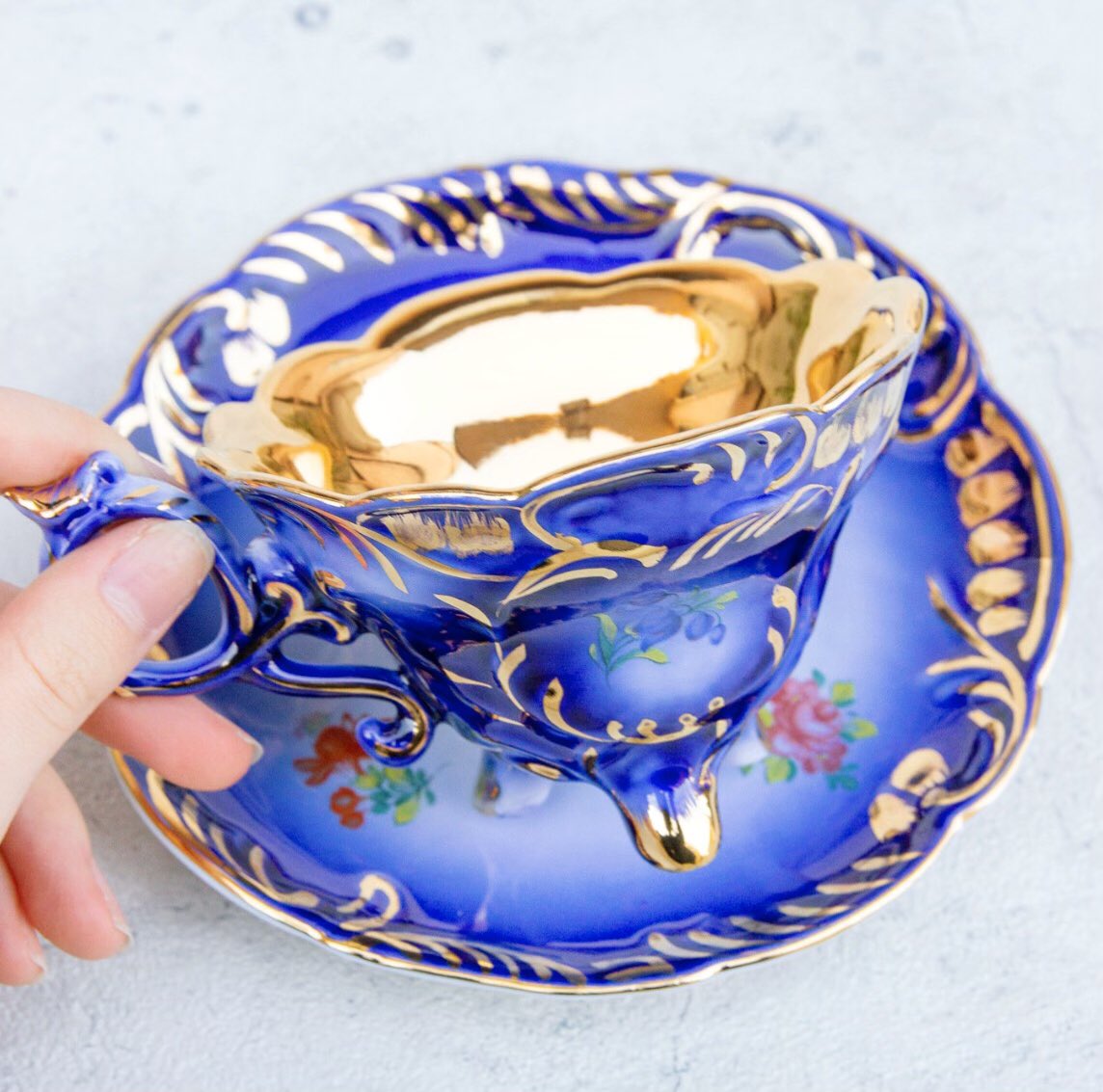 カップ内側がゴールド、脚のついた豪華なティーカップが新入荷しています。wondertrip.shop-pro.jp/?pid=149150361