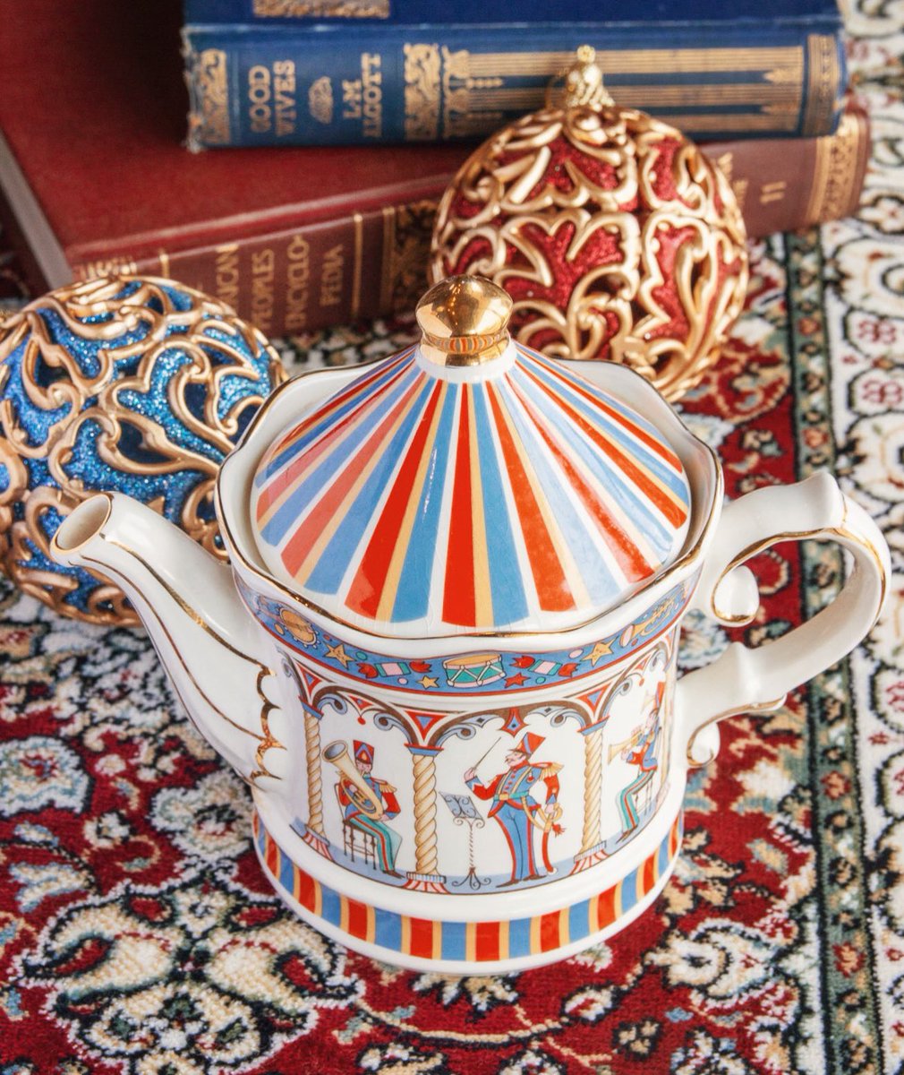 イギリス製のビンテージティーポットをweb shopに掲載しました。サーカステントの形になっており、側面には楽器を演奏する人々が描かれています🎪wondertrip.shop-pro.jp/?pid=150157308