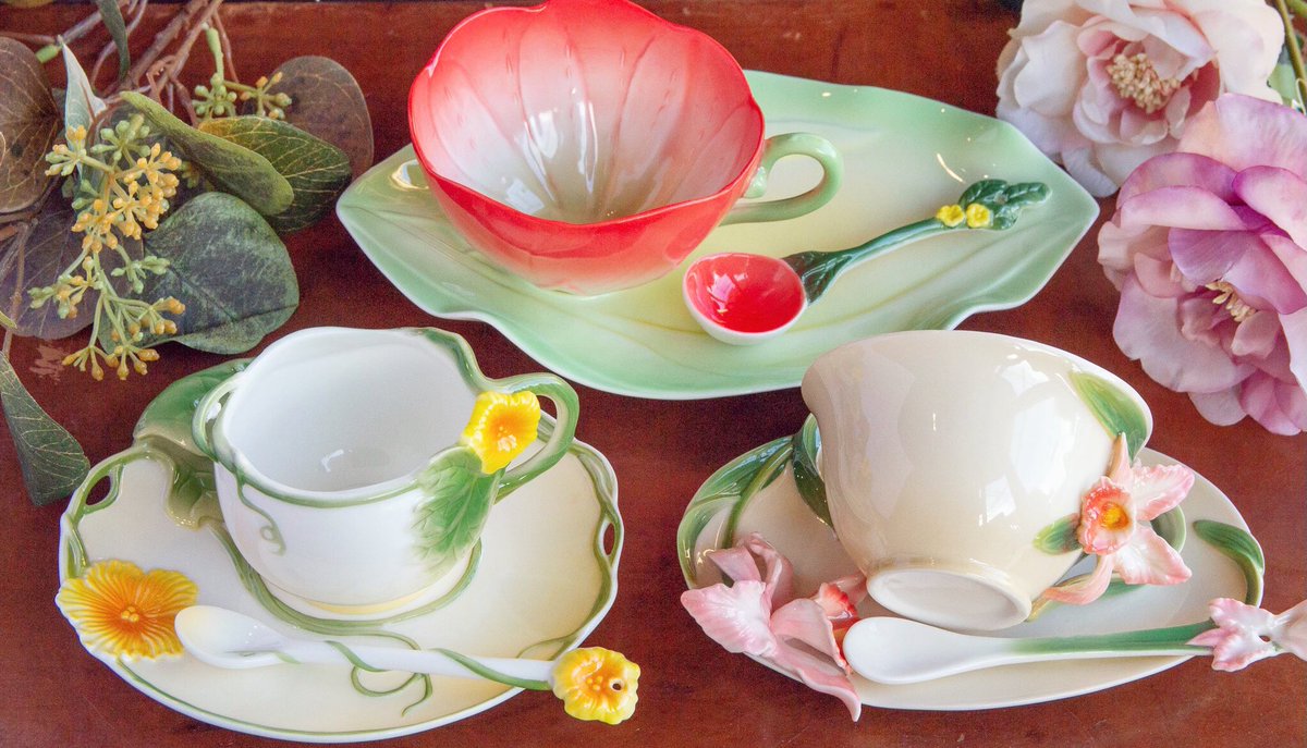 立体的な花柄が美しいティーポットと三つ足のカップ&ソーサーを掲載しました。wondertrip.shop-pro.jp/?mode=srh&sort…