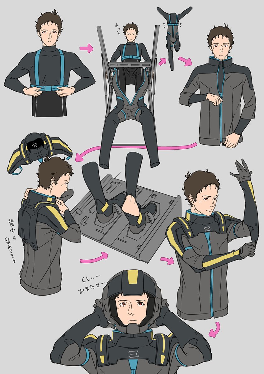 パンフよく見たらカーゴの中詳細載ってて歓喜ノーマルスーツのパーツ分け見る限りこんな感じで着るのかな
