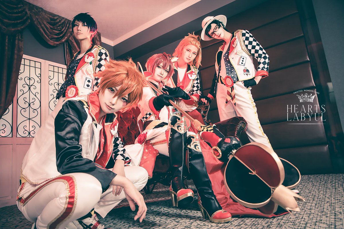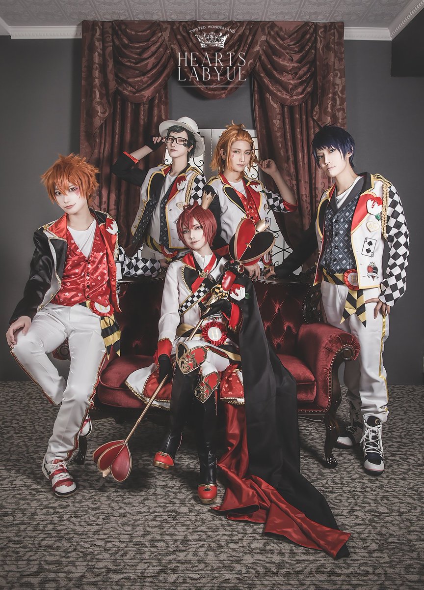 ※コスプレ【ツイステ】 ハーツラビュル寮 リドル:豆腐 トレイ:ちか ケイト:二羽 デュース:イト エース:まうかし Photo: 監督生