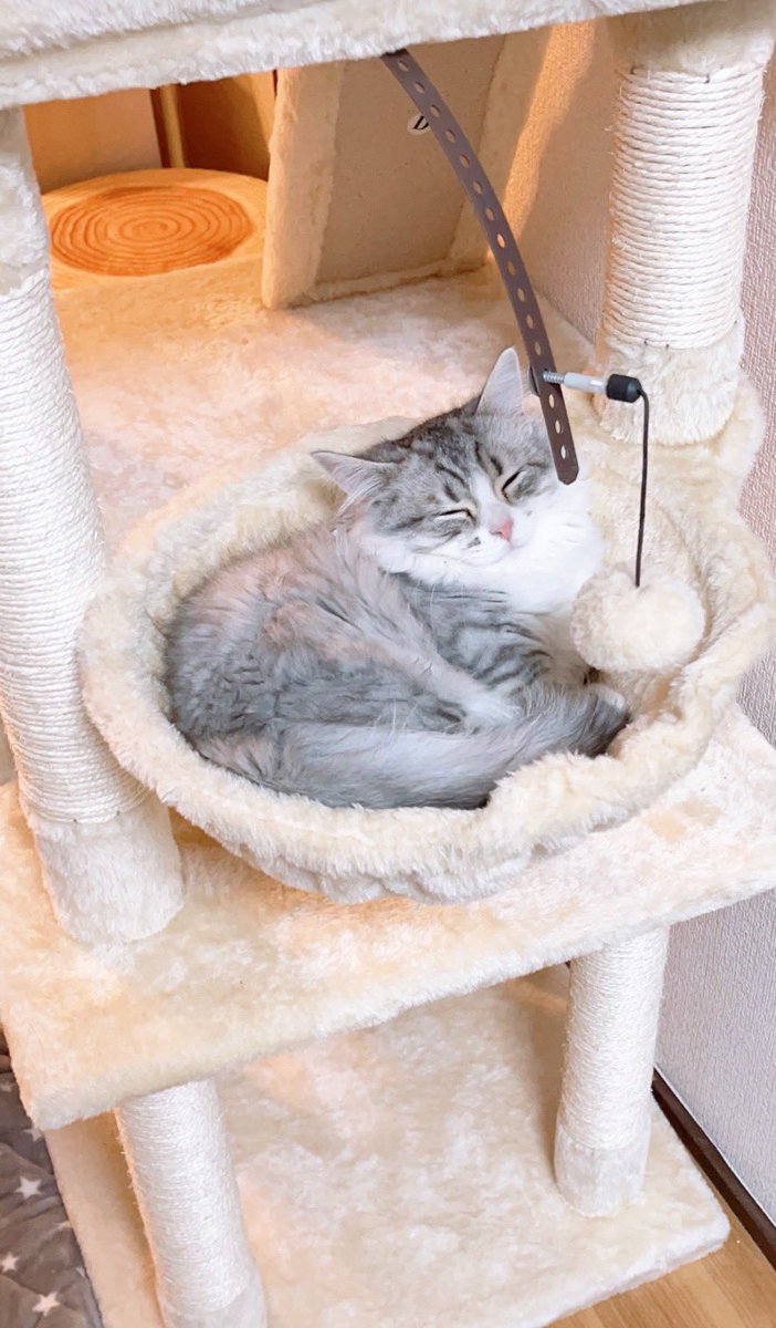 キャットタワーのてっぺんで寝てるミク。 そろそろ暖房の季節かしら。 成猫だからまだ大丈夫かな…?