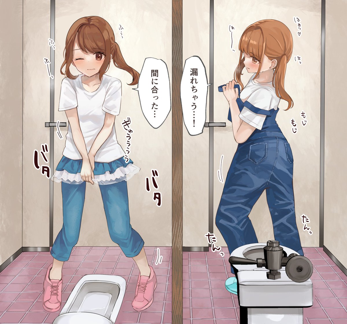 連れション中に便秘💩が降りてきてしまう子の絵です 控えめに言って癖(ヘキ)