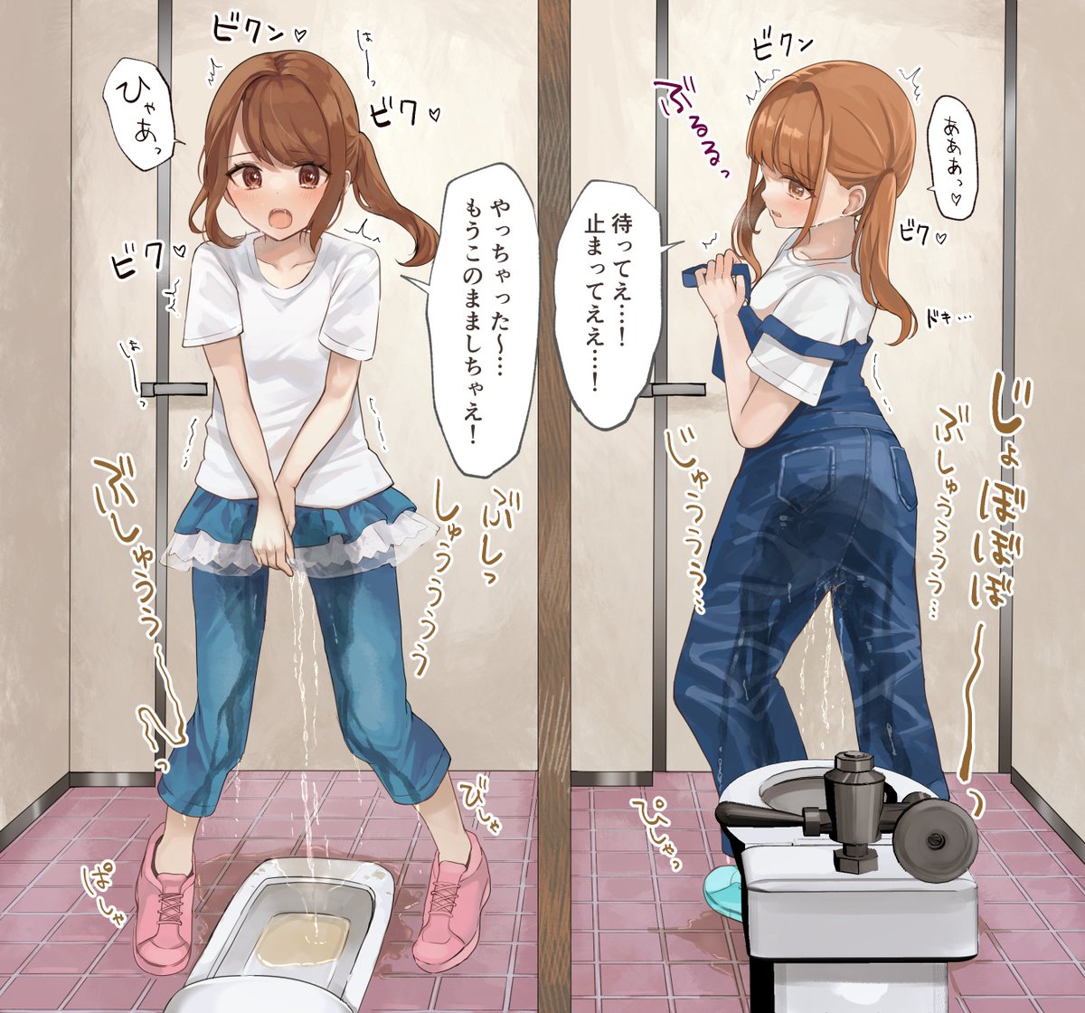 服を着たままおしっこしちゃう子たちです😣 skebリクエストありがとうございました🙏