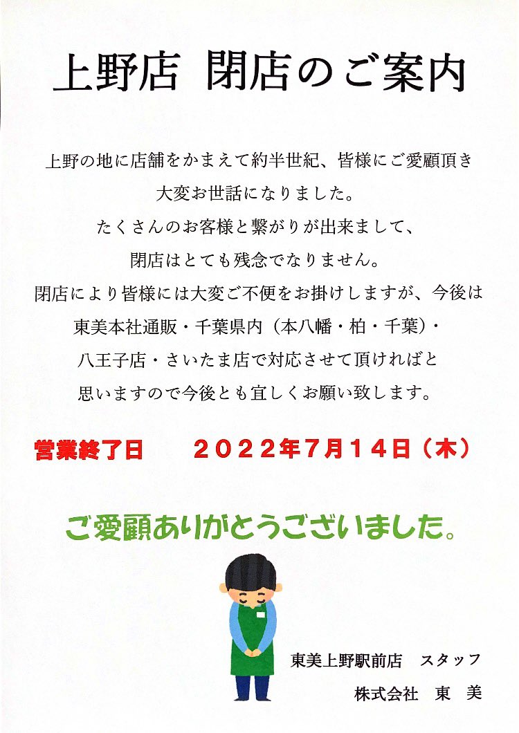 東美上野駅前店最期の日までどうぞよろしくお願いいたします❤️🔥