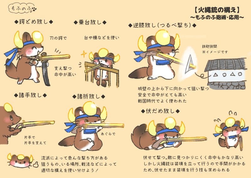 【火縄銃の構え】 ▼長政くん流・応用編🐹 狙うもの、場所や戦法によって適切な構えを選ぼう!